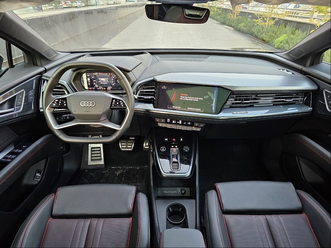 آئودی Q5 e-tron با طراحی داخلی لوکس و امکانات رفاهی پیشرفته، تجربهای در سطح خودروهای پریمیوم را به سرنشینان ارائه میدهد. فضای کابین این خودرو با مواد باکیفیت مانند چرم مصنوعی، آلومینیوم برسخورده و پلاستیک نرم تزئین شده و حس لوکس بودن را بهخوبی منتقل میکند. صفحهنمایش مرکزی 11.6 اینچی لمسی با سیستم اطلاعات-سرگرمی MMI آئودی، امکان کنترل قابلیتهای خودرو از جمله ناوبری، اتصال به تلفن هوشمند از طریق Apple CarPlay و Android Auto و تنظیمات تهویه را فراهم میکند. علاوه بر این، یک صفحهنمایش 10.25 اینچی بهعنوان نشانگرهای دیجیتال پشت فرمان اطلاعات رانندگی را با وضوح بالا نمایش میدهد. سیستم تهویه مطبوع سهمنطقهای، صندلیهای برقی با حافظه و قابلیت گرمایش، و سقف پانورامیک از دیگر امکانات رفاهی هستند که راحتی سرنشینان را تضمین میکنند. فضای صندوقعقب با ظرفیت 550 لیتر (قابل افزایش با خواباندن صندلیهای عقب) برای استفادههای خانوادگی و سفرهای طولانی کاملاً مناسب است. طراحی داخلی با نورپردازی محیطی LED قابل تنظیم، حس مدرنیته و لوکس بودن را تقویت میکند و تجربه رانندگی را لذتبخشتر میسازد.