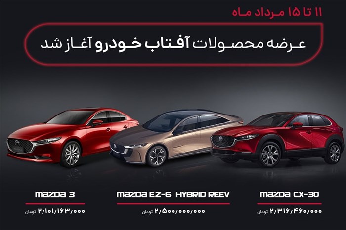 عصر خودرو- آفتاب خودرو، واردکننده محصولات مزدا در ایران از تاریخ ۱۴۰۴/۰۵/۱۱ تا مورخ ۱۴۰۴/۰۵/۱۵ سه محصول پرطرفدار خود را در سامانه خودروهای وارداتی Salecars.ir عرضه میکند.