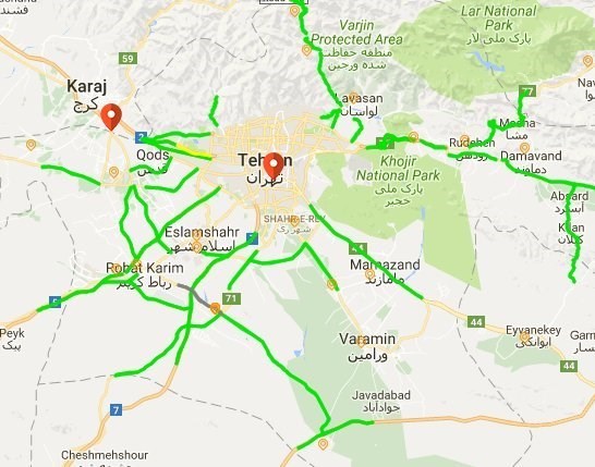 با وجود گزارش ترافیک در محورهای متصل به تهران، گزارشها نشان می دهد راههای ورودی و مسیرهای منتهی به پایتخت ترافیکی روان را تجربه میکنند و راههای دو استان البرز و قم نیز جز در چند محدوده کوچک ترافیکی روان دارند.