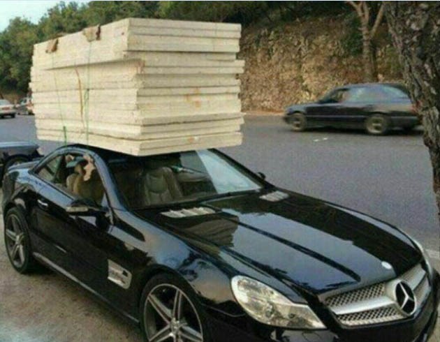 اما حمل بار با مرسدس- بنز مشکی کیت AMG مورد نادر و به مراتب تعجب آورتری نسبت به مواردی است که ذکر کردیم. البته مشخص نیست که این اقدام عجیب در ایران صورت گرفته یا مربوط به کشور دیگری است.