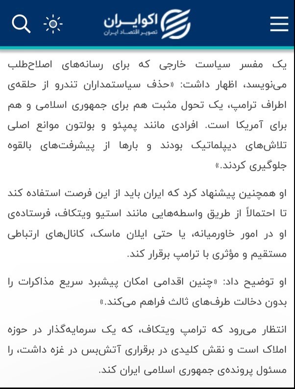 اوایل روی کار آمدن ترامپ، تعدادی رسانه ایرانی به نقل از تحلیلگران اصلاحطلب نوشتند که ایران باید با استفاده از فرصت و اعتماد به آمریکا از طریق ایلان ماسک با ترامپ کانالهای ارتباطی مستقیم و موثری برقرار کنند.