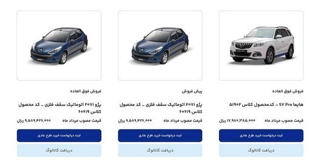 به گزارش پایگاه خبری «عصر خودرو» به نقل از تسنیم، ایرانخودرو در این مرحله از فروش محصولات خود، 11 محصول سورن پلاس XU7، سورن گازسوز، دنا اتوماتیک، پژو207 TU3، پژو 207 اتوماتیک سقف فلزی، تارا دستی و اتوماتیک، رانا پلاس، هایما 7X، هایما S5PRO و هایما S7PRO را به صورت فروش فوری با موعد تحویل 30 روز، فوقالعاده با موعد تحویل 90 روز و پیش فروش دستکم چهار ماه پس از واریز وجه و انعقاد قرارداد عرضه میکند.