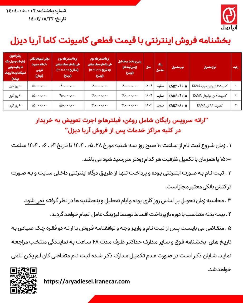 آغاز فروش ویژه کامیونتهای کاما با شرایط استثنایی در آریا دیزل