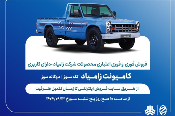 به گزارش پایگاه خبری «عصرخودرو» به نقل از سایپانیوز، فروش فوری و فوری اعتباری محصولات زامیاد با کاربری از ساعت 10 صبح روز پنج‌شنبه 13 آذرماه آغاز و تا تکمیل ظرفیت انجام خواهد شد.