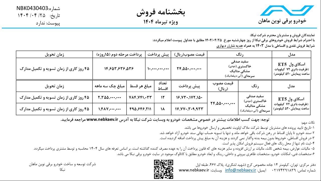 برای دریافت اطلاعات بیشتر و ثبتنام، متقاضیان میتوانند به وبسایت رسمی شرکت نبکا به نشانی nebkaev.ir مراجعه کنند.